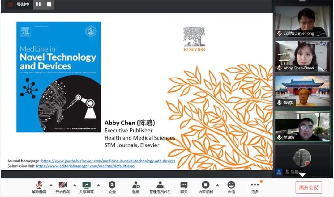 会上,MEDNTD期刊主编、北航医工交叉创新研究院院长、医学科学与工程学院院长、北京市生物医学工程高精尖创新中心主任樊瑜波教授致辞。他表示MEDNTD期刊与医工交叉大背景十分契合,医学中的高精尖技术与装备的创新发展是助力推进医工融合的必然选择,要坚持前沿创新引领和核心技术突破,推动高端医疗器械自主创新,推进自主开发品牌的器械跻身国际先进水平。