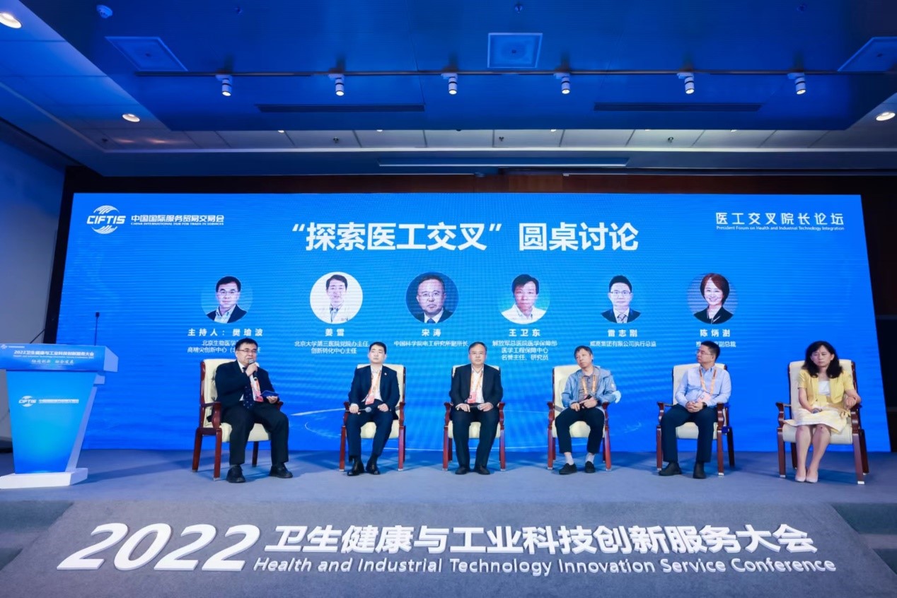 2022年中国国际服务贸易交易会全球服务贸易峰会8月31日在北京举行,健康卫生服务专题作为本届服贸会九大专题板块之一,以“融创发展,共享健康”为主题,北京航空航天大学生物医学工程高精尖中心作为联合主办方组织了“医工交叉院长论坛”。