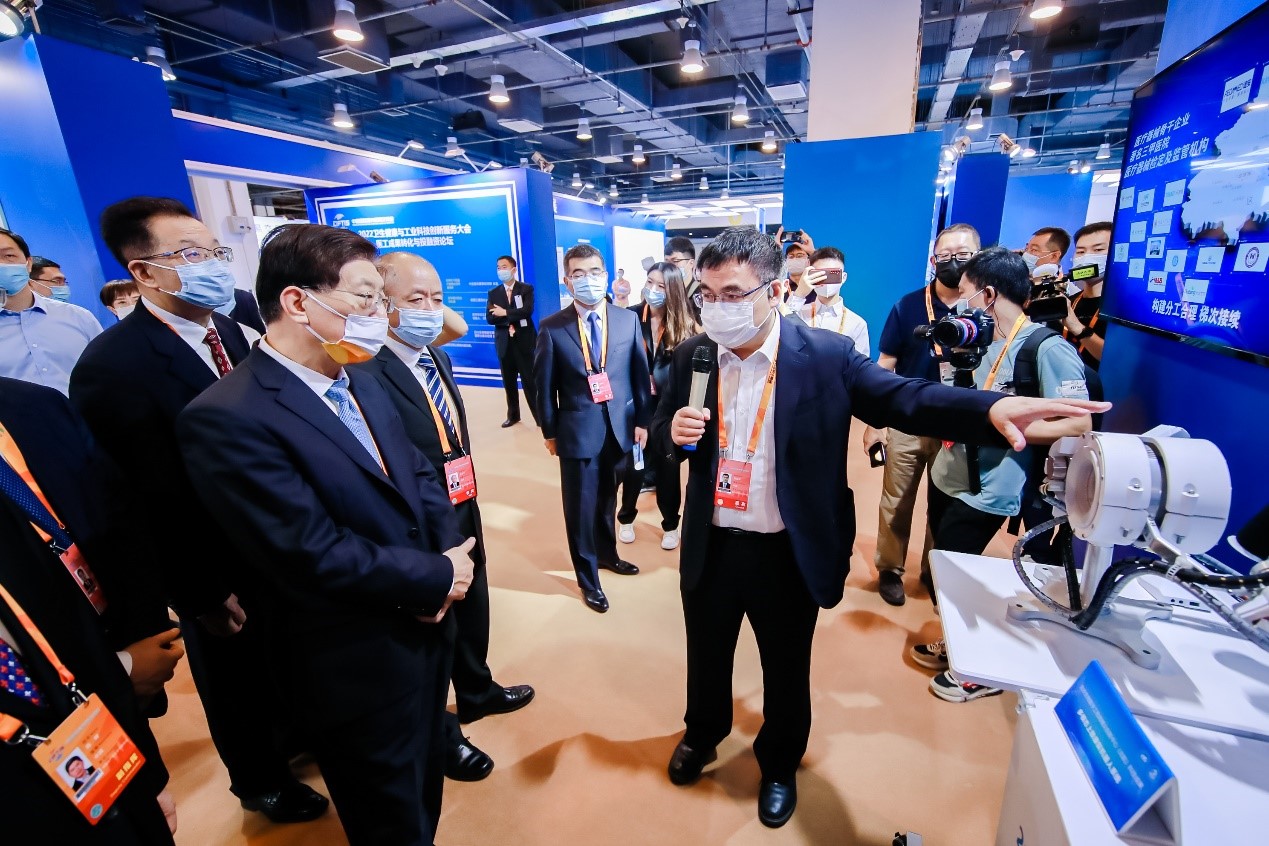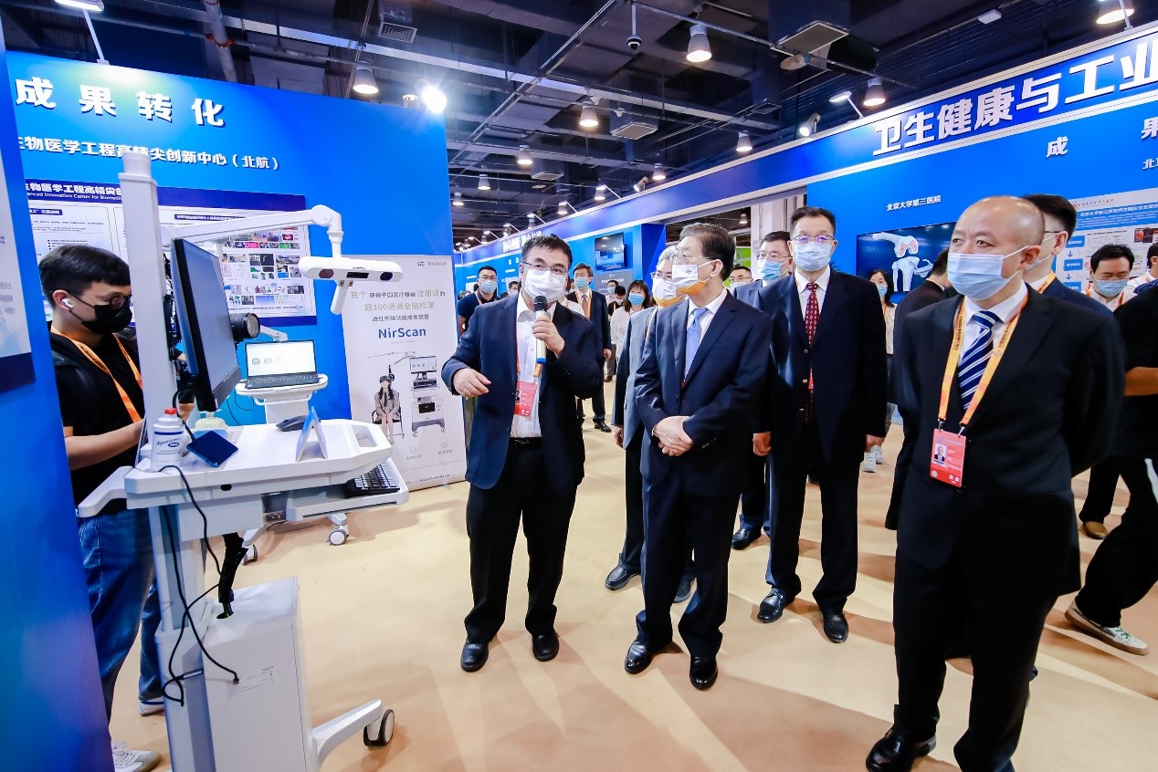 9月2日,国家卫健委副主任曾益新院士、工信部王江平副部长、北京市纪委陈健书记等一行参观了北京航空航天大学北京生物医学工程高精尖中心位于国家会议中心展位,中心主任樊瑜波教授向领导们介绍了高精尖中心和中心科研成果情况。