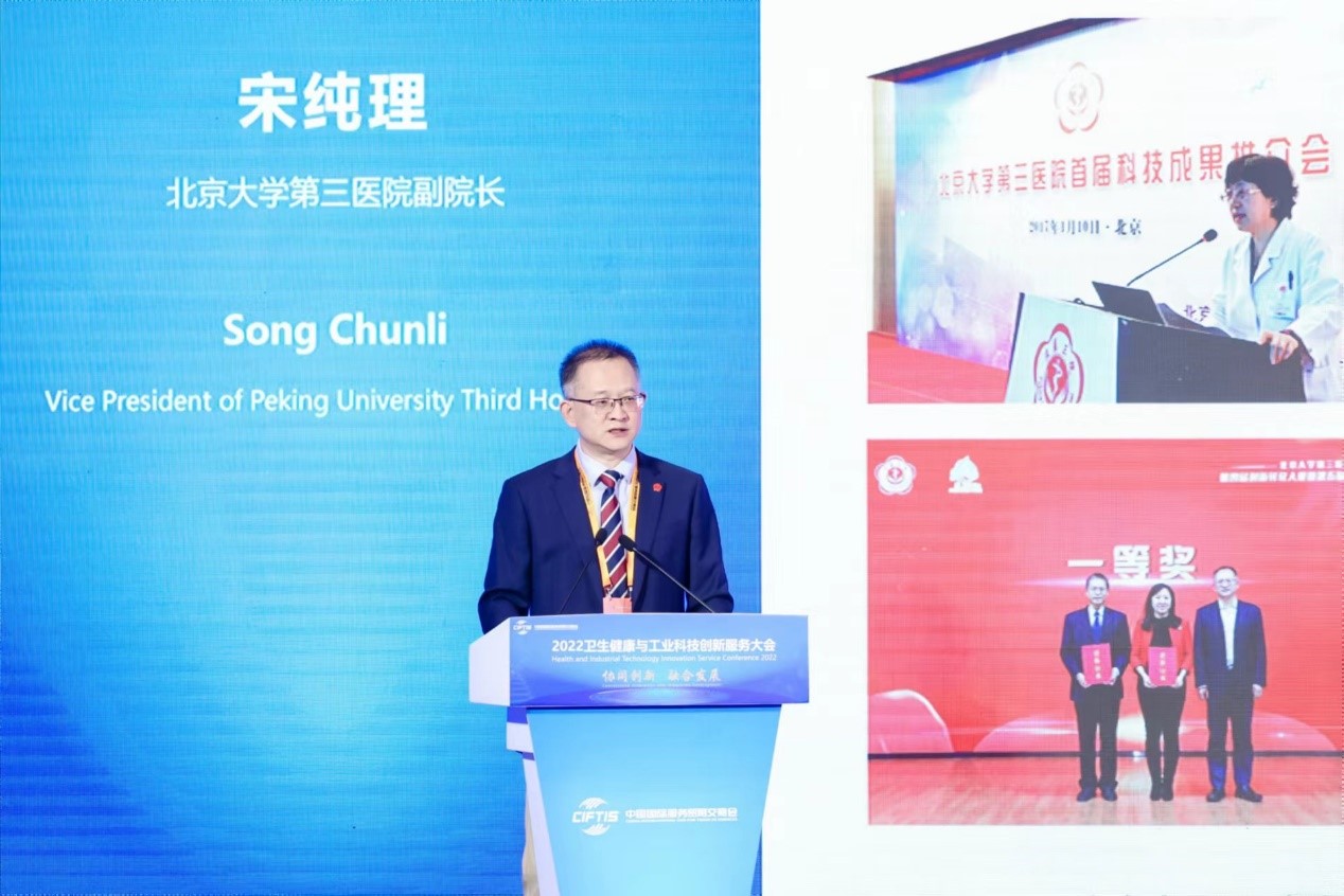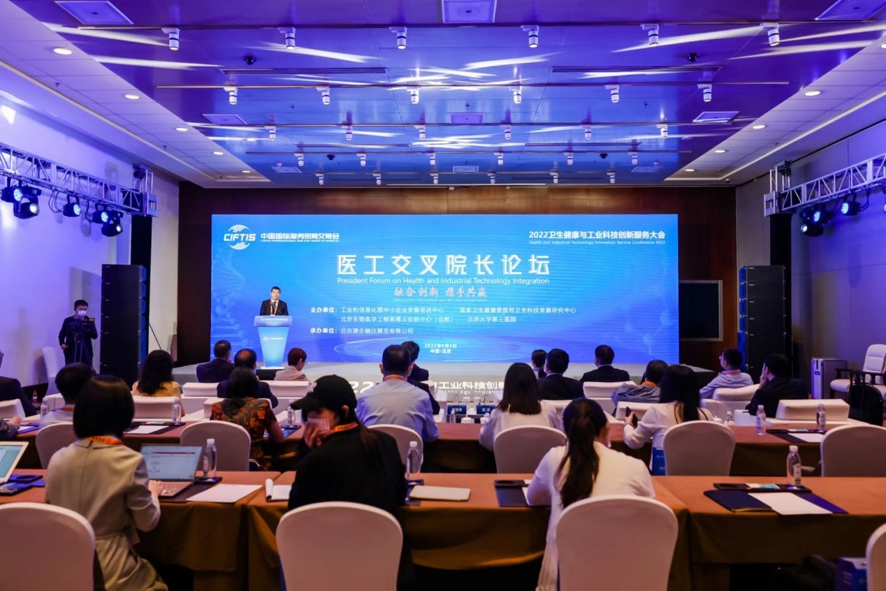9月3日上午,高精尖中心联合工业和信息化部中小企业发展促进中心、国家卫生健康委医药卫生科技发展研究中心、北京大学第三医院主办的2022年中国国际服务贸易交易会“医工交叉院长论坛”在国家会议中心召开。