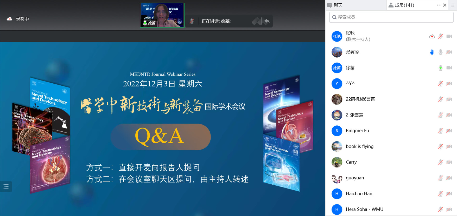 12月03日,北京时间早9:00-10:30,2022年“医学中新技术与新装备”国际学术会议(International Conference on "Medicine in Novel Technology and Devices", 2022)(第二场)于腾讯会议线上平台如期召开。
