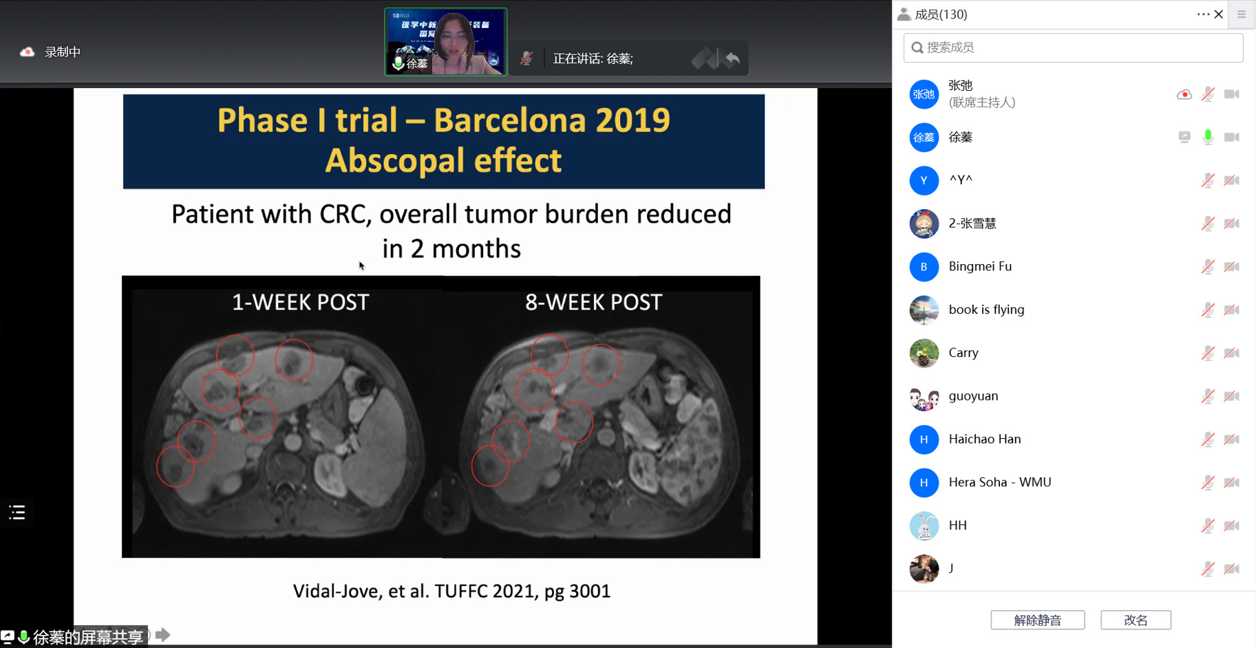 徐蓁教授首先介绍了当前主要的无创伤消融技术的种类和弊端,从而引出本次报告的新技术-基于超声的无创伤消融技术(histotripsy);随后,徐教授介绍了利用超声进行无创伤消融的原理,以及这个技术在肿瘤消退、刺激系统免疫效应、选择性效应(selective effect)方面的研究;最后,徐教授分享了基于超声的无创伤消融技术临床转化,新设备在临床治疗肝脏肿瘤方面的安全性和有效性的成果。