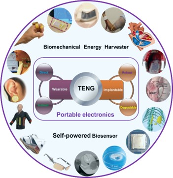 便携式电子器件,如穿戴式与植入式电子器件在日常生活和临床医疗上的应用越来越广泛。目前已朝着小型化、智能化、多功能化和柔性化发展。然而,便携式电子产品面临的主要问题是电池不能长期、持续供能,频繁充电和更换电池限制了其进一步发展,特别是临床应用的植入式电子医疗器件,如心脏起搏器、脑起搏器、神经刺激器等。此外,更换电池还会带来二次手术风险与昂贵的医疗费用,如何为这些便携式电子器件提供安全、环保、可持续的电能成为亟须解决的问题。基于摩擦起电与静电感应耦合原理的TENG能够高效的将机械能转换为电能,有效的解决了便携式电子器件的供能问题。
